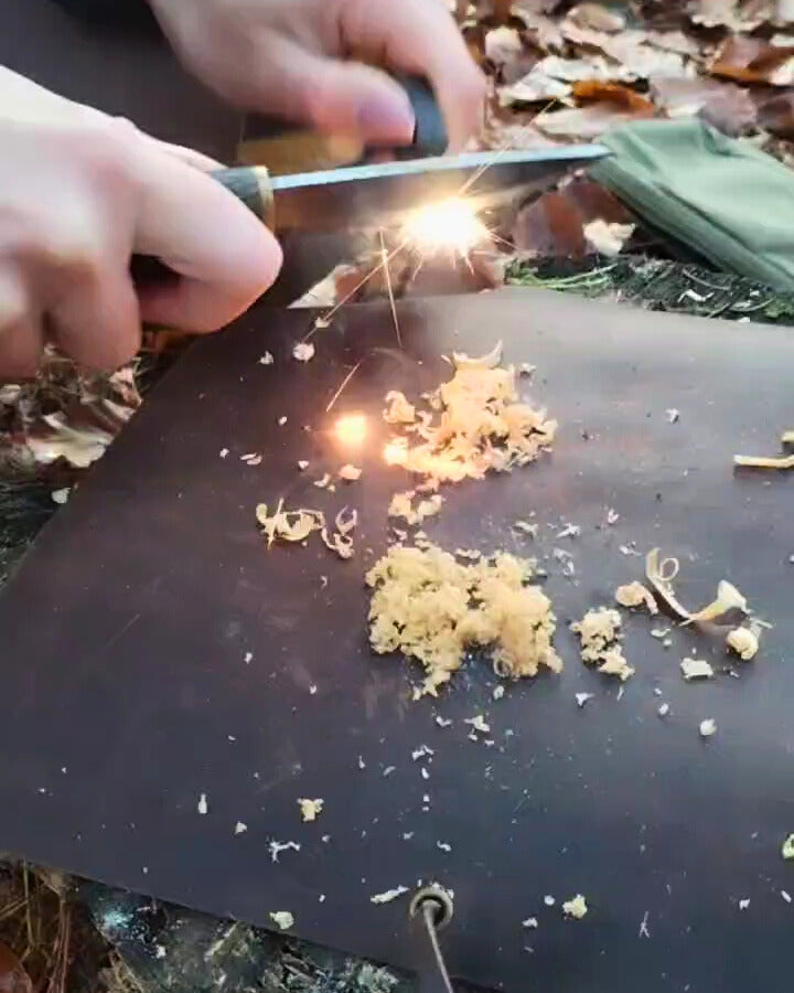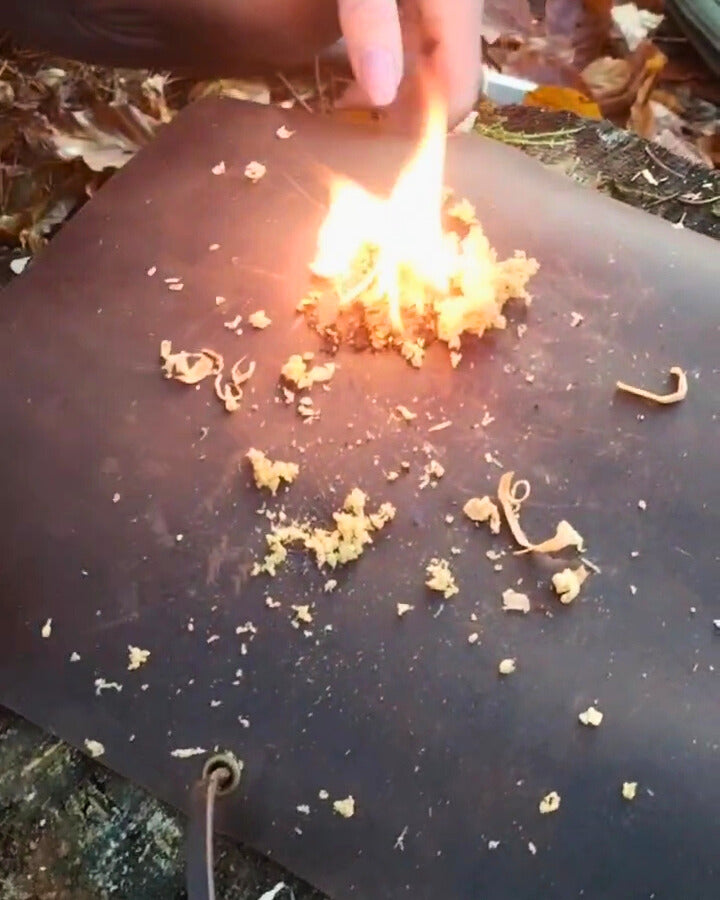 Ob als Feuerschutzmatte für deinen Hobo/Hugo-Ofen, als Schneideunterlage für Mahlzeiten, als Sitzkissen beim Campen oder als Unterlage für Zunder – dieses Lederstück ist für viele Situationen gemacht. Du kannst darauf Holzspäne oder Zunder vorbereiten, entzünden und das Feuer anschließend sicher in deinen Ofen übertragen.